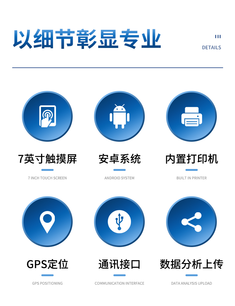 25、打印功能:内置热敏打印机,可通过USB B型外链打印机,单条或多条数据合并打印,可打印检测结果检测报告可打印检测项目、样品名称、检测结果、结果判断、检测日期 、检测单位、检验人员、被检测单位等信息;USB B型接口可连接A4打印机打印结果。