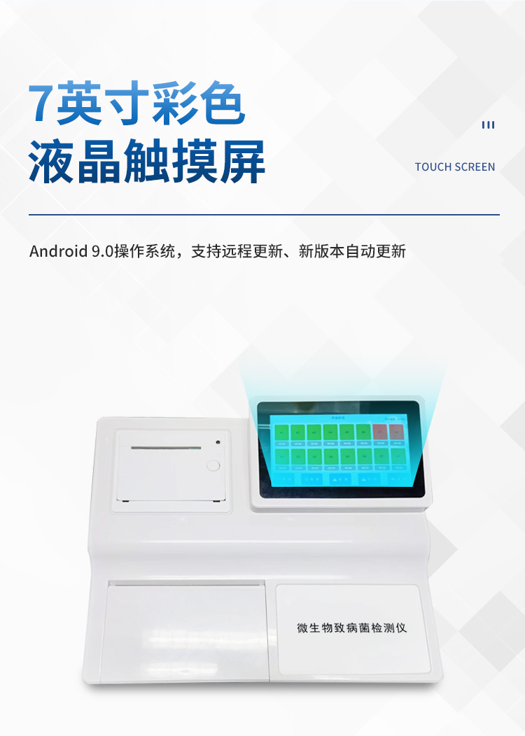 简要描述: 微生物致病菌检测仪显示屏幕:7英寸液晶触摸显示屏(支持定制10.1真彩触摸屏);样品通量:16x0.2ml兼容单管和8联管;加热方式:半导体制冷片结合电性电阻热红外技术;检测器:新型光学检测器,结合数字电路控制,光信号稳定;检测试剂:开放式恒温荧光检测试剂;数据分析:可对被检指标进行定性或半定量检测,并可导出数据绘制标准曲线。