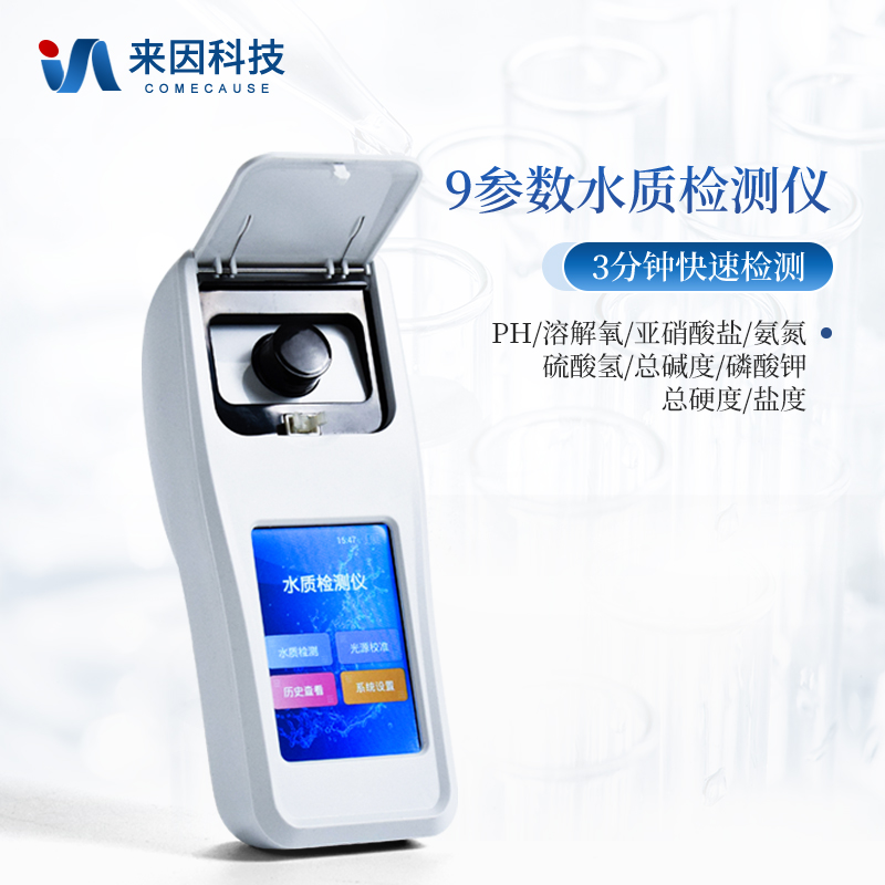 可检测PH、溶解氧、氨氮、亚硝酸盐、总碱度、硫化氢、盐度、磷酸盐、总硬度9项指标;