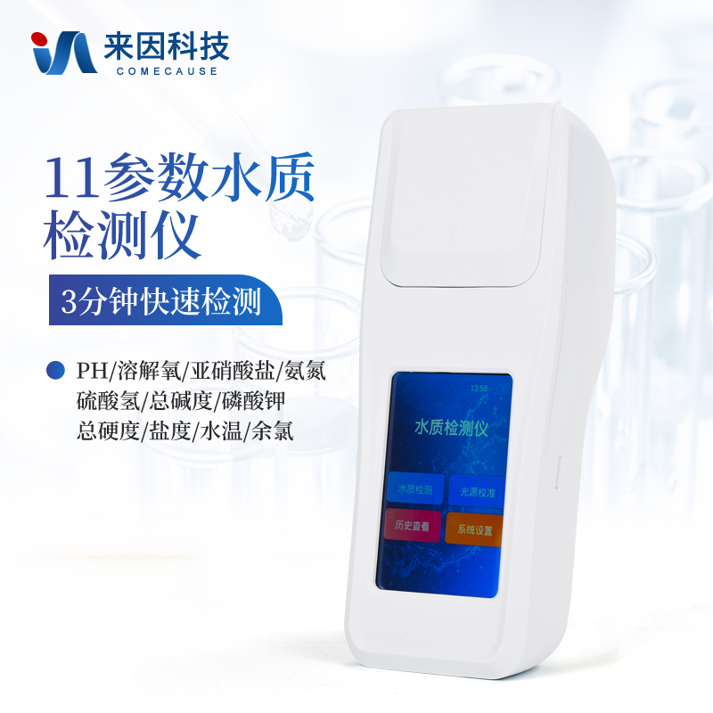 简要描述: 11参数水质检测仪IN-SS11是一款适用于工业污水、水产养殖、河流监测、游泳场馆等领域的检测仪,配合快速显色检测试剂,可“快速、简单、准确、稳定”进行测量,拥有精美的外观造型,简单的操作界面,准确的检测系统,帮助用户获得精细的数据,可更准确、有效的分析水体状况,提前预防养殖风险,及时避免损失。