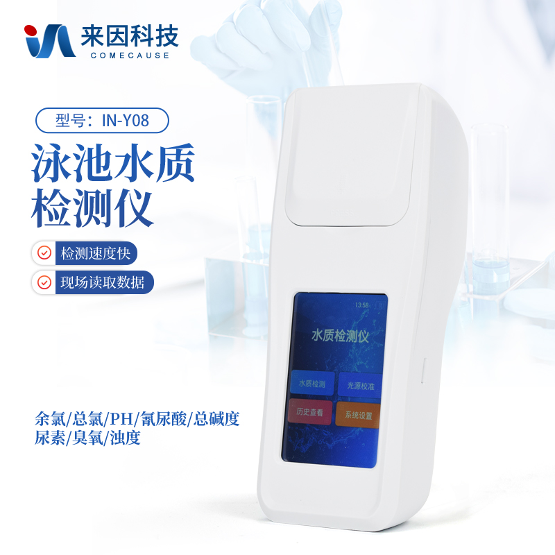 简要描述: 泳池水质检测仪IN-Y08是一款适用于游泳场馆、户内外游泳池、水上乐园、温泉浴池、等领域的检测仪,配合快速显色检测试剂,可“快速、简单、准确、稳定”进行测量,拥有精美的外观造型,简单的操作界面,准确的检测系统,帮助用户获得精细的数据,可更准确、有效的分析水体状况,提前预防养殖风险,及时避免损失。