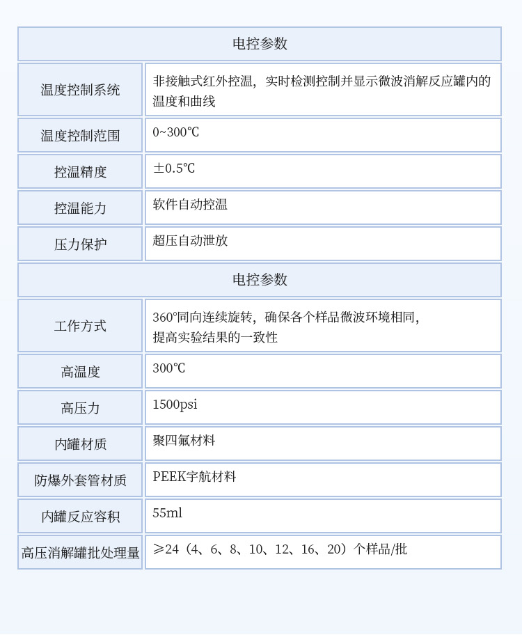 高压消解罐批处理量:≥10个样品/批。