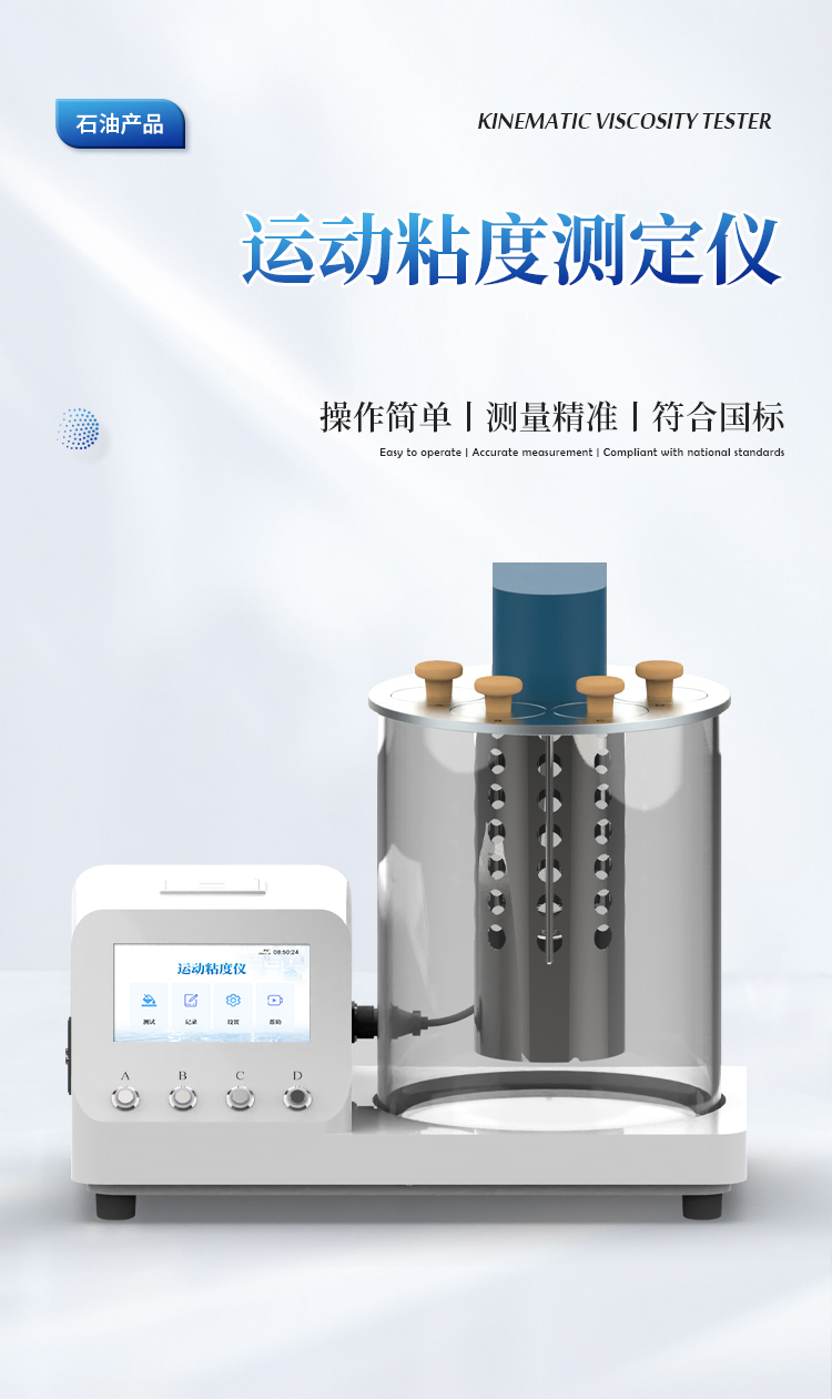 本产品石油产品运动粘度自动测定仪是依据国家标准《GB265-88石油产品运动粘度测定法》设计制造的专用测试仪器,适用于测定液体石油产品的运动粘度。本仪器具有计时试样运动时间,自动计算运动粘度的最终结果。本方法适用于测定液体石油产品(指牛顿液体)的运动粘度,其单位为m2/s,通常在实际中使用为mm2/s。动力粘度可由测得的运动粘度乘以液体的密度求得。本方法是在某一恒定的温度下,测定一定体积的液体在重力下流过一个标定好的玻璃毛细管粘度计(品氏、乌氏)的时间,粘度计的毛细管常数与流动时间的乘积,即为该温度下测定液体的运动粘度。该温度下运动粘度和同温度下液体的密度之积为该温度下的动力粘度。