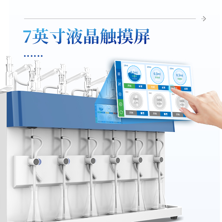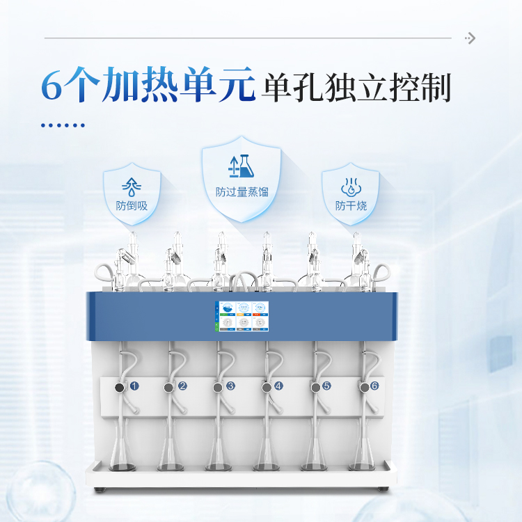 智能一体化蒸馏仪采用智能模块化设计:方法自定义设置保存/读取、开机自动调取使用,冷凝单元特殊定制蛇形冷凝管、智能终点控制防过量蒸馏、防倒吸保护,防干烧保护、实现了智能操作简单、自动蒸馏、美观实用、节能降耗、节省人工的同时为用户做样提高效率节约人员成本开销。