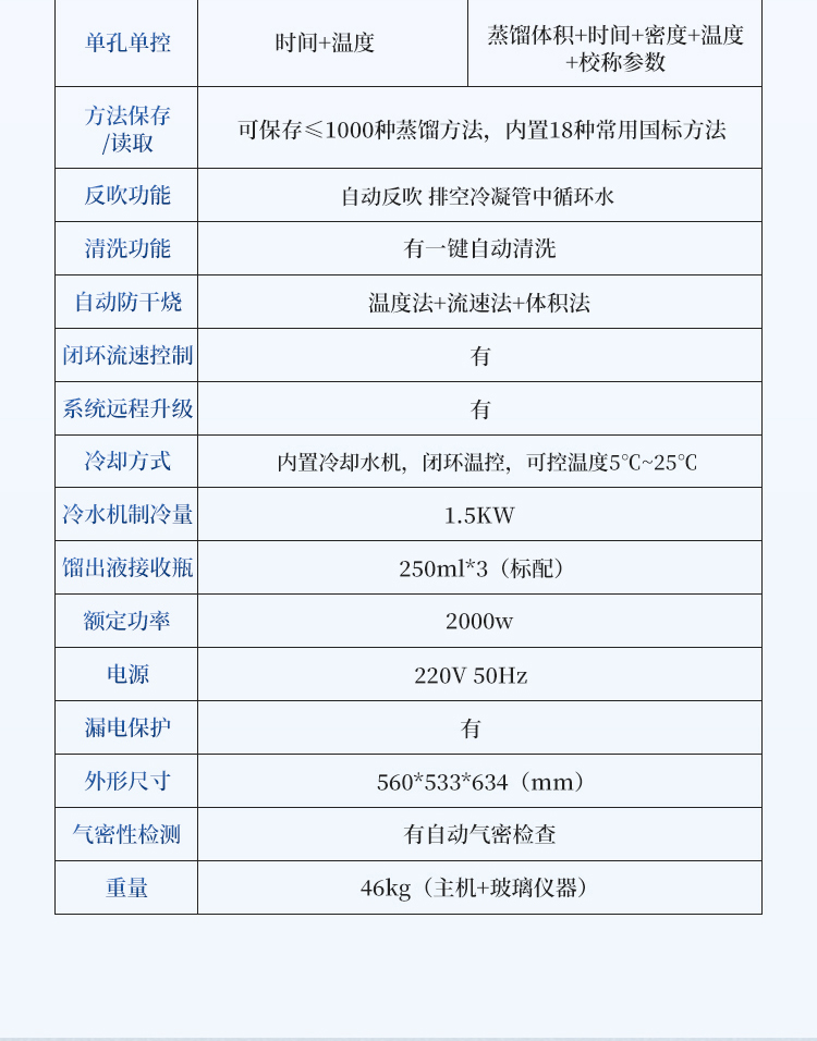 蒸馏精度 | / | ±0.1mL | ±0.1mL |