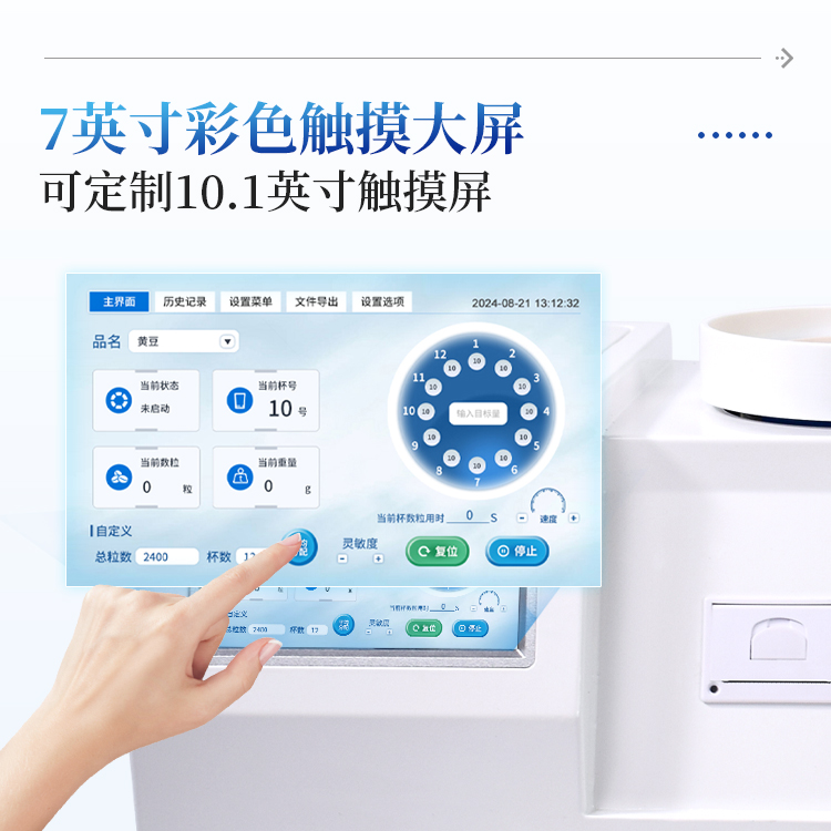 12、数粒盘速度可调:分样型自动数粒仪具有无极调速功能,数粒速度快慢可调。