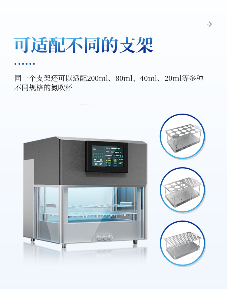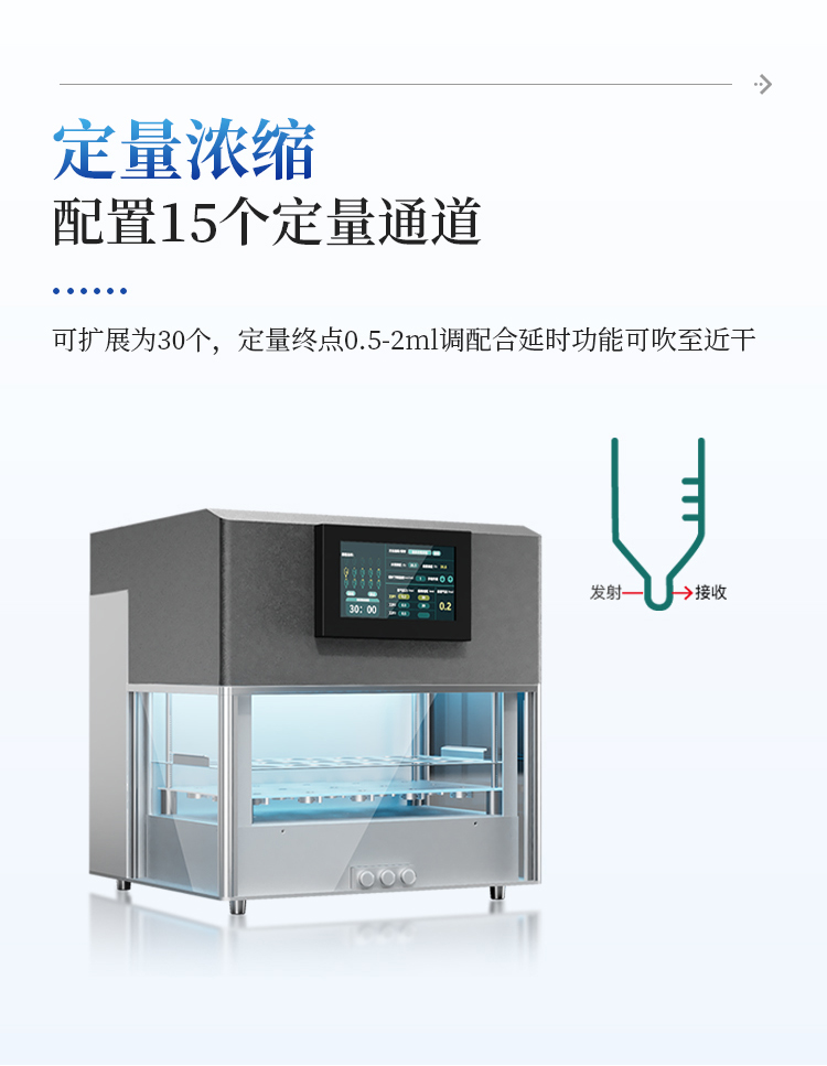 13★氮吹针自动跟随液面下降,下降速度可调,并可中途手动调节喷针的升或降而无需停止自动下降;