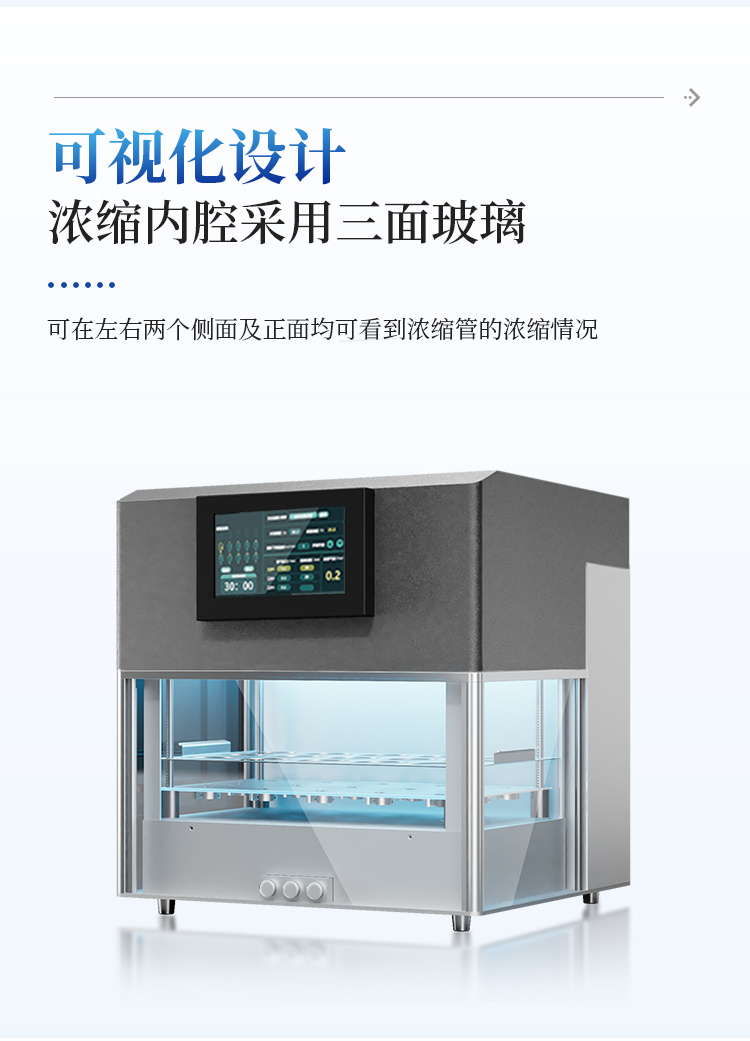 10.▲浓缩内腔采用三面玻璃可视化设计,可在左右两个侧面及正面均可看到浓缩管的浓缩情况;