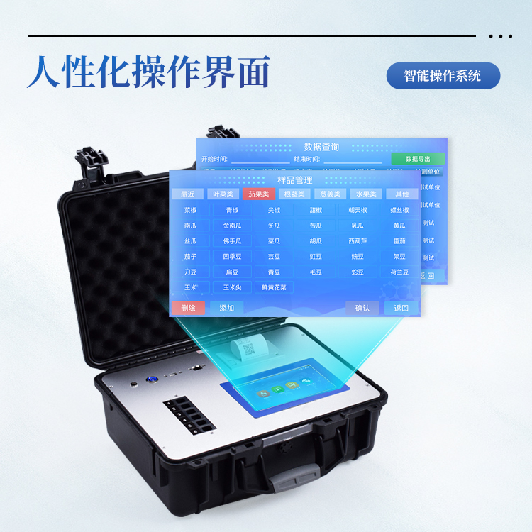 检测标准:依据国家标准方法(GB/T5009.199-2003)以及世界卫生组织WHO、世界粮农组织FAO残留农药检测标准、世界环境保护局EPA参照摄入量等要求来设计。采用酶抑制率比色法对水果、蔬菜等农产品中有机磷和氨基甲酸酯类农药含量进行快速准确的检测。