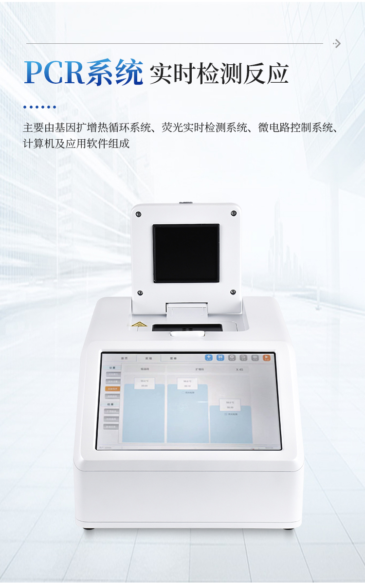 实时荧光定量PCR系统主要用于运行实时荧光定量PCR实验,通过荧光激发和采集的方式,对实验过程进行实时监控,将实验过程数据绘制成荧光曲线,实时呈现于仪器显示界面,并对实验数据进行拟合和分析,最后可生成PDF格式的实验报告。