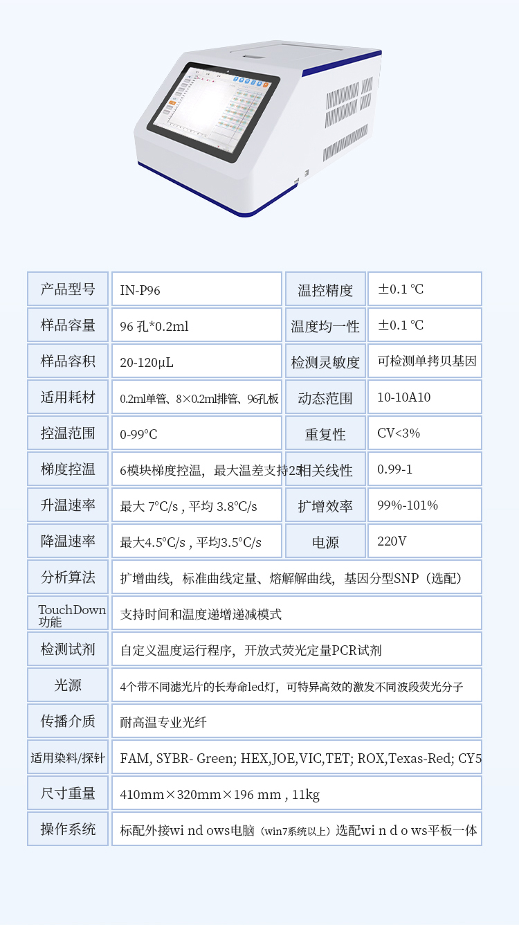 7.软件功能强大:荧光定里  PCR 系统 软件;实时扩增反应曲线功能;特定 标本实时反应曲线显示;实时温度曲 线;数据分析功能;阴阳结果自动判定功能;图形化显示功能等。