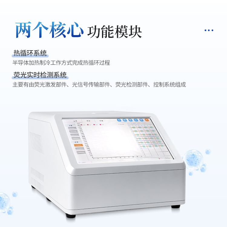 实时荧光定量PCR系统是实时检测反应的仪器,主要由基因扩增热循环系统、荧光实时检测系统、微电路控制系统、计算机及应用软件组成。其中两个核心功能模块:热循环系统和荧光实时检测系统。其中基因扩增热循环系统工作原理与传统基因扩增仪工作原理基本相同,采用半导体加热制冷工作方式完成热循环过程。荧光检测系统主要有由荧光激发部件、光信号传输部件、荧光检测部件、控制系统组成。
