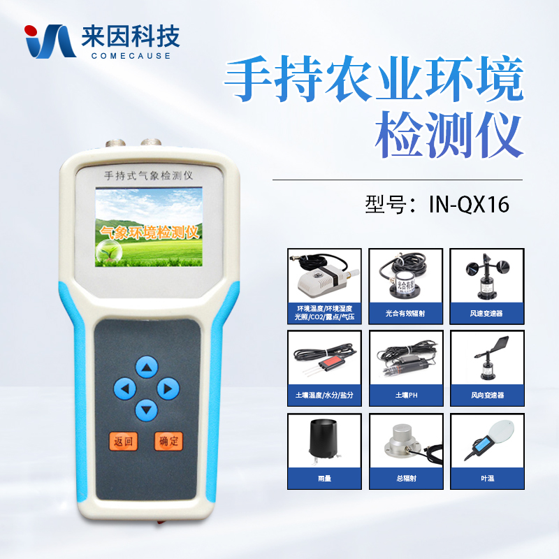 简要描述: 手持农业环境监测仪IN-QX16是针对农田、草地等地区进行环境监测的一款设备,该仪器采用大屏幕点阵式液晶汉字显示指导操作流程,具有操作简捷方便的特点。可以对土壤、气象以及叶面温度等多种要素进行全方面监测,为农业等多种环境进行监测,是保障农业现在化、智能化、高效化方向发展。
