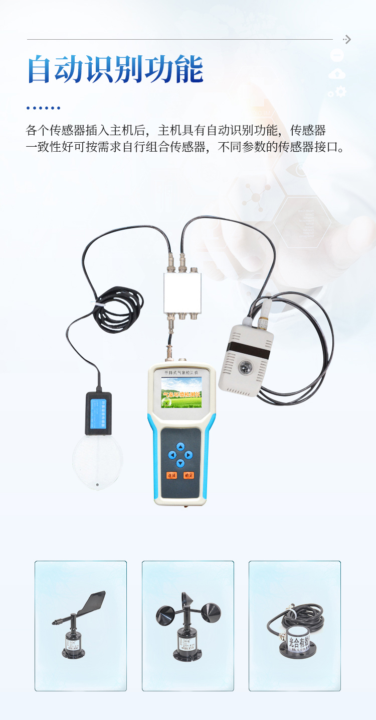 各个传感器插入主机后,主机具有自动识别功能,传感器一致性好,可按需求自行组合传感器,不同参数的传感器接口可以互相转换,对测量精度没有影响。