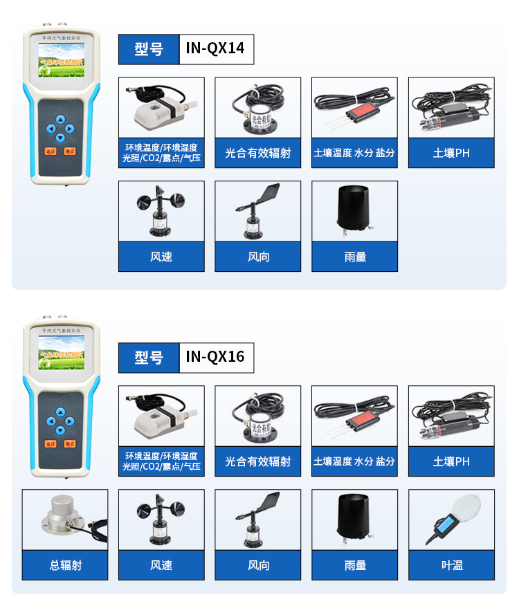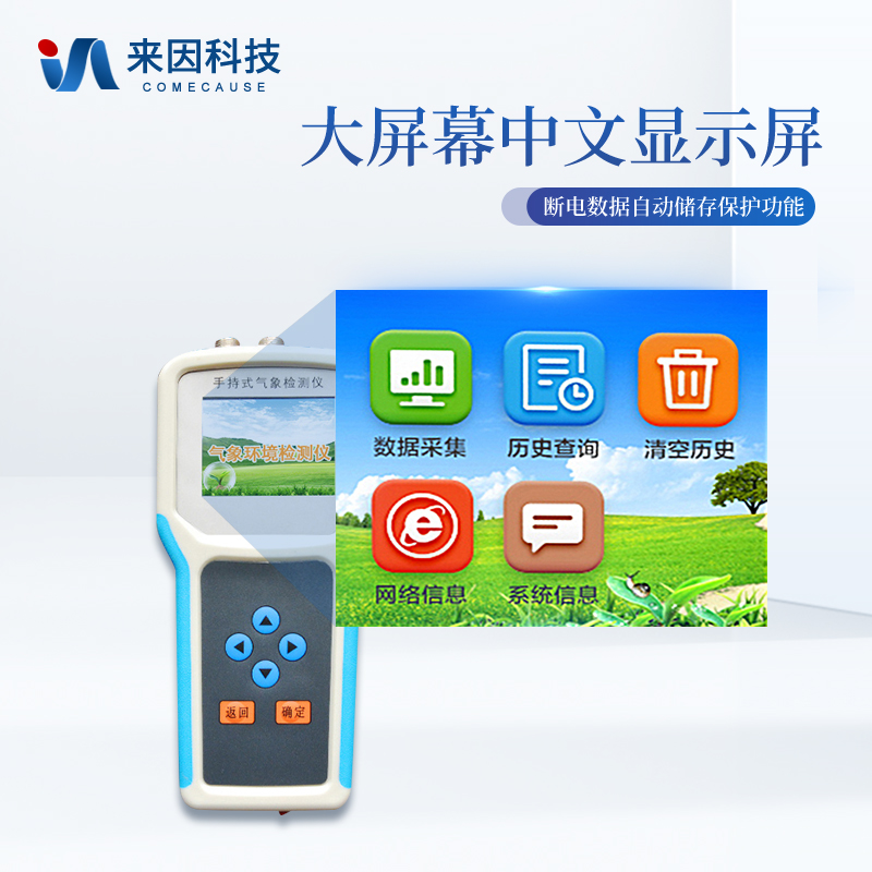 简要描述: 手持式智能农业气象环境检测仪IN-QX4是妖精视频在线免费观看专门针对农田、草场局部小尺度环境设计的,对与植被和农作物生长密切相关的土壤、水气等环境参数监测的农田小气候站。它主要观测与农业相关的空气温度、空气湿度、光照强度、二氧化碳浓度等4个环境参数气象要素,为农业科研、农业生产等提供良好的支持。