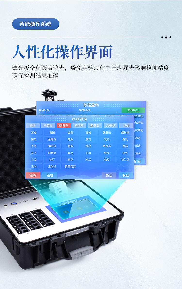 4、仪器具有100多种蔬菜名称菜单库,分类管理,并可按需添加或删除蔬菜名,编辑蔬菜名称,可直接打印出蔬菜名称。