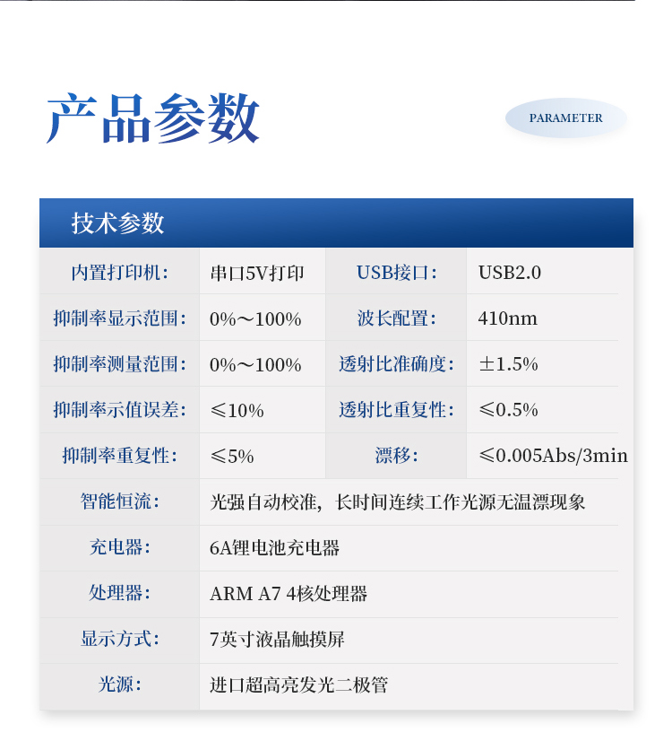 9、光源采用进口超高亮发光二极管,具有低功耗、高精度、稳定性强、光源可控可以关掉不使用的光源,响应速度快等优点。