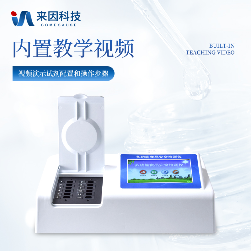 可快速检测各类食品中的甲醛、二氧化硫、亚硝酸盐的含量,仪器预留其他项目检测程序和端口,根据日后需求可方便的自主增加检测项目。