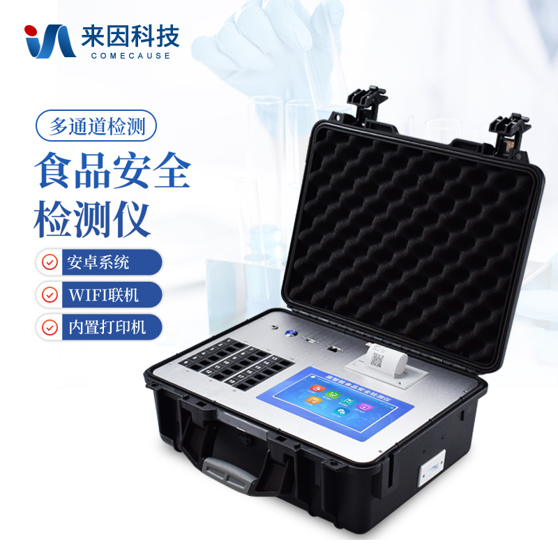 多功能食品安全检测仪可快速检测200多项目,包含非食用化学物质、滥用食品添加剂、农药残留、兽药残留、重金属、病害肉、营养强化剂、抗生素类残留、激素类残留、真菌毒素类残留、化学类残留等现场的定性定量检测。