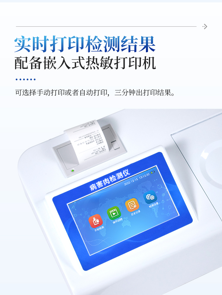 5、配备新一代嵌入式热敏打印机,可选择手动打印或者自动打印,检测完成可自动打印检测报告和二维码。