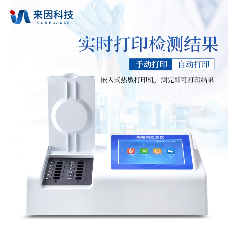 可快速检测病害肉、组胺、挥发性盐基氮,仪器预留其他项目检测程序和端口,根据日后需求可方便的自主增加检测项目。