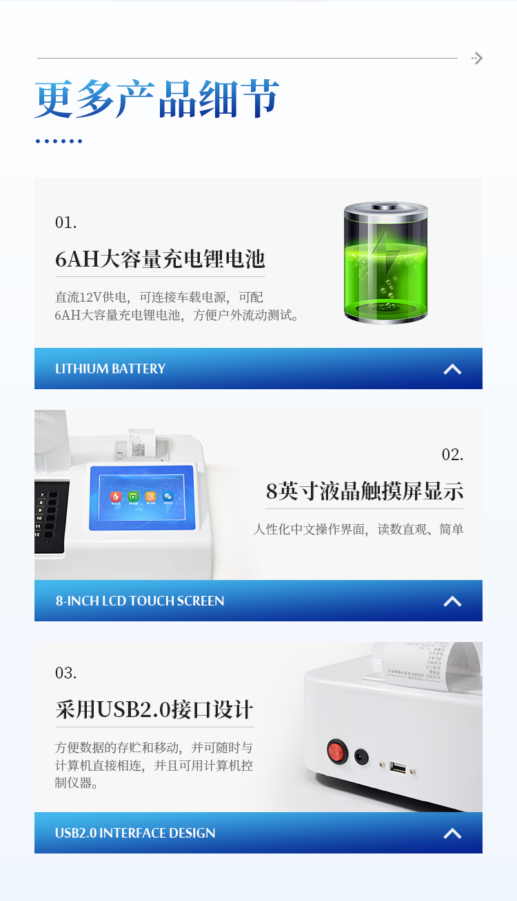 3、智能化程度高,仪器具有自检功能:具有开机自检和调零功能,具有自动检测重复性功能。