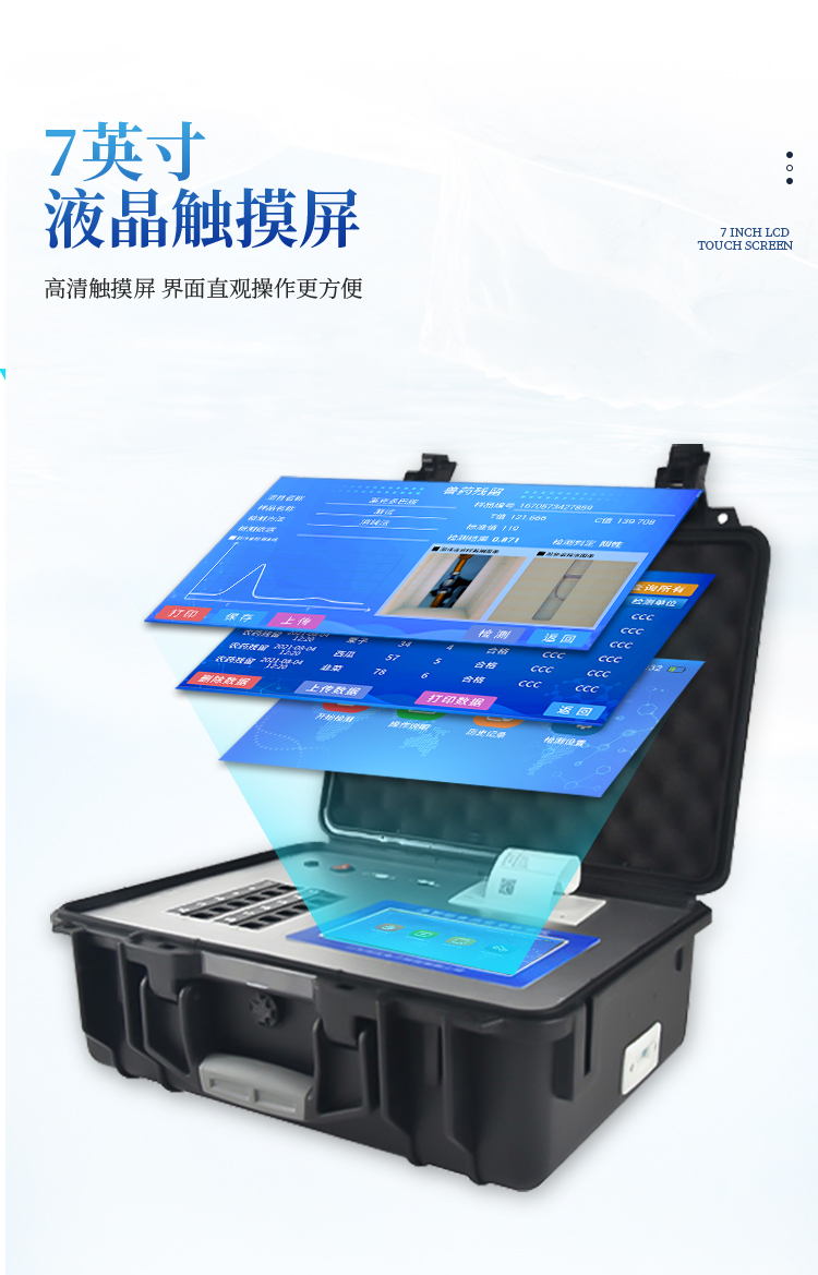 2、显示方式:7英寸液晶触摸屏显示,人性化中文操作界面,读数直观、简单。