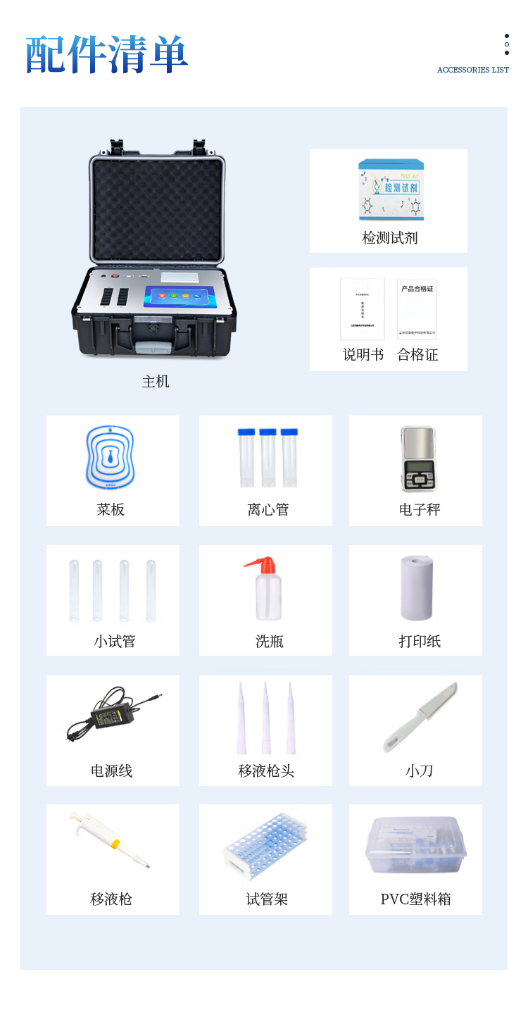 6、一体化便携式快检设备,满足现场及流动检测使用需求,能够在同一软件下实现所有检测项目的检测,并可通过同一窗口直观显示检测结果。