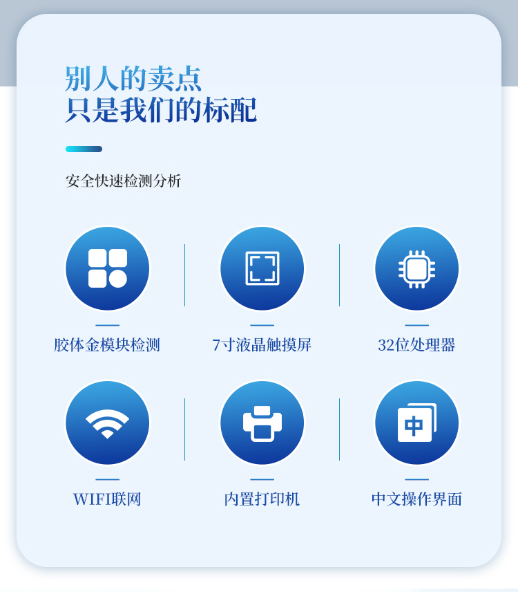 6、一体化便携式快检设备,满足现场及流动检测使用需求,能够在同一软件下实现所有检测项目的检测,并可通过同一窗口直观显示检测结果。